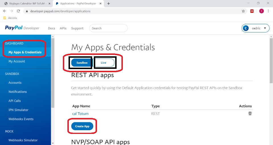 ATTENTION : si vous devez basculer le mode “Live” ou “Sandbox” du plugin WP ToTuM Calendar, les ID client et secret sont différents d’un mode à l’autre, vous aurez besoin alors de les changer dans le Back End du plugin. Vous aurez aussi besoin de vider le cache de votre navigateur.